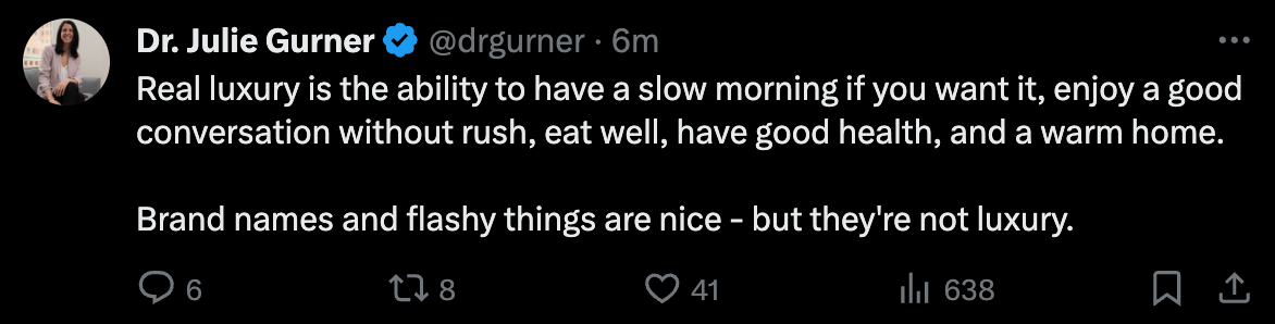 Describes today pretty well. Woke up without an alarm, worked, played video games, had lunch, exercised, had tea with good company, did some volunteer work, ran errands, and that's the whole day.