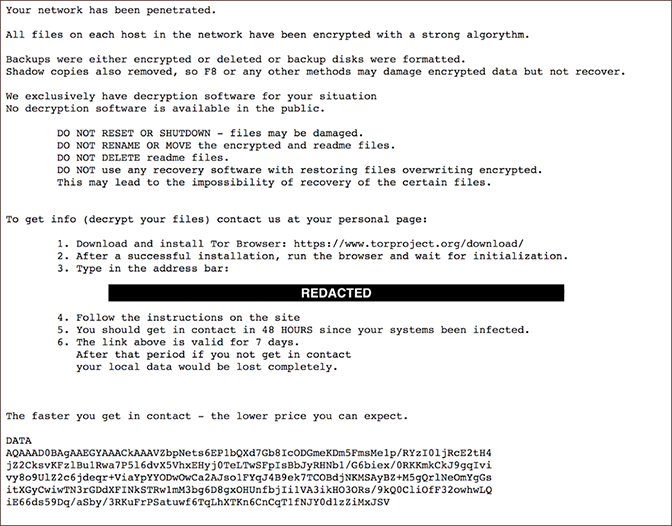 "a type of malicious software designed to block access to a computer system until the target pays a sum of money."