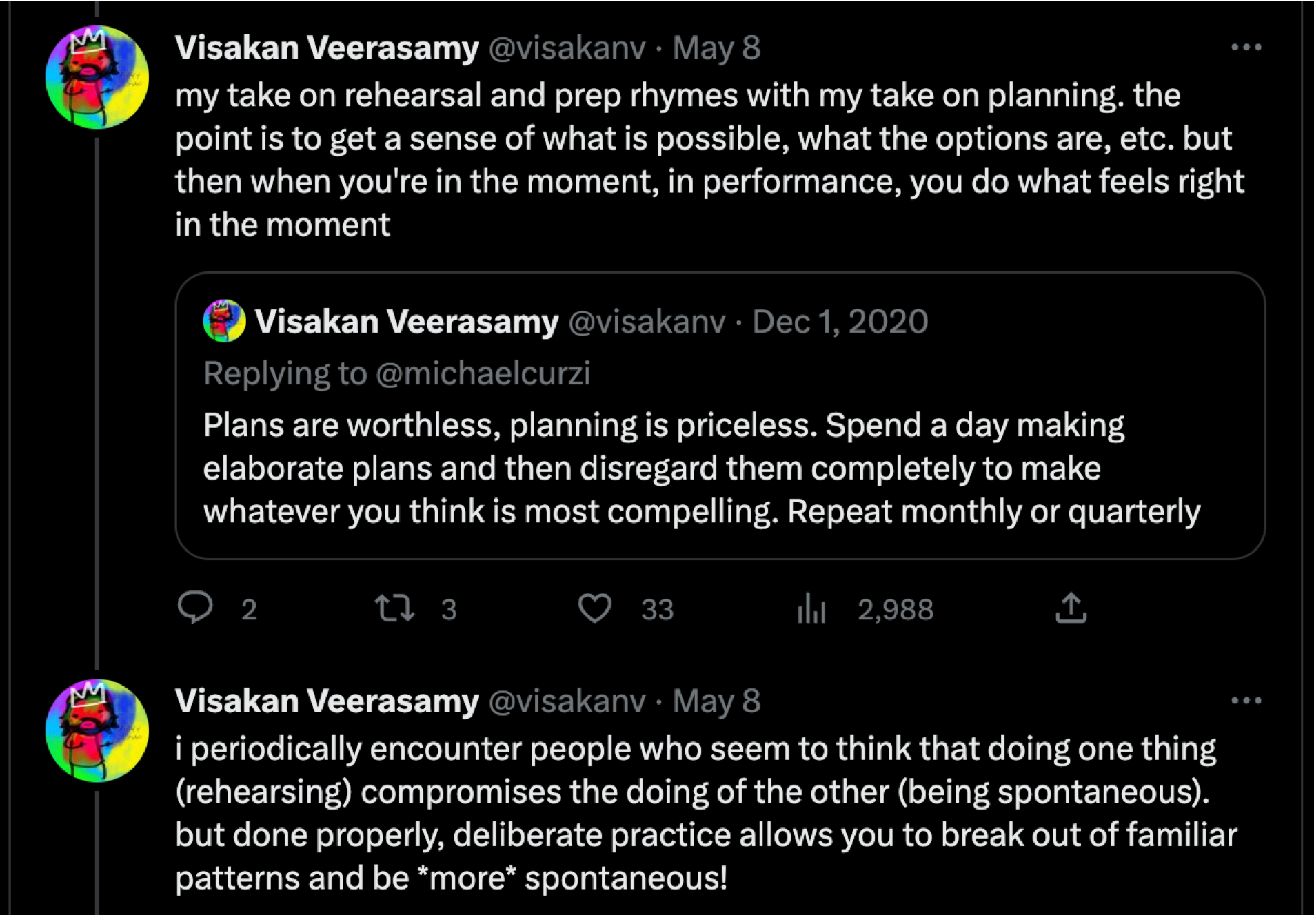 This tweet provides some interesting pushback to my idea that you don't need anything but minimal prep to deliver a talk.